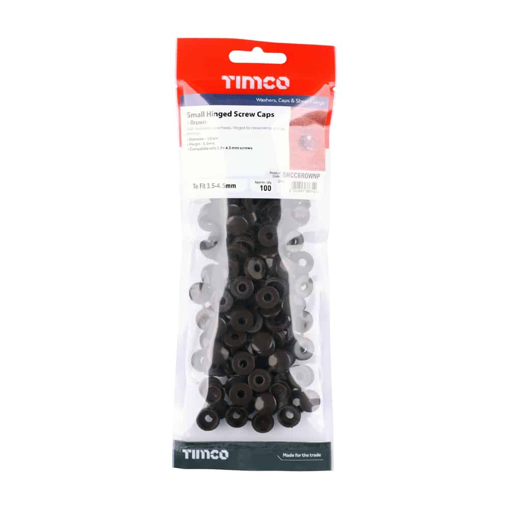 Timco small Brown hinged screw caps to fit 3.0–4.5mm screws (gauge 4–9). TIMpac pack of 100.
