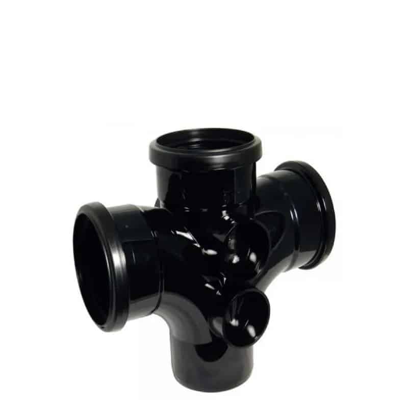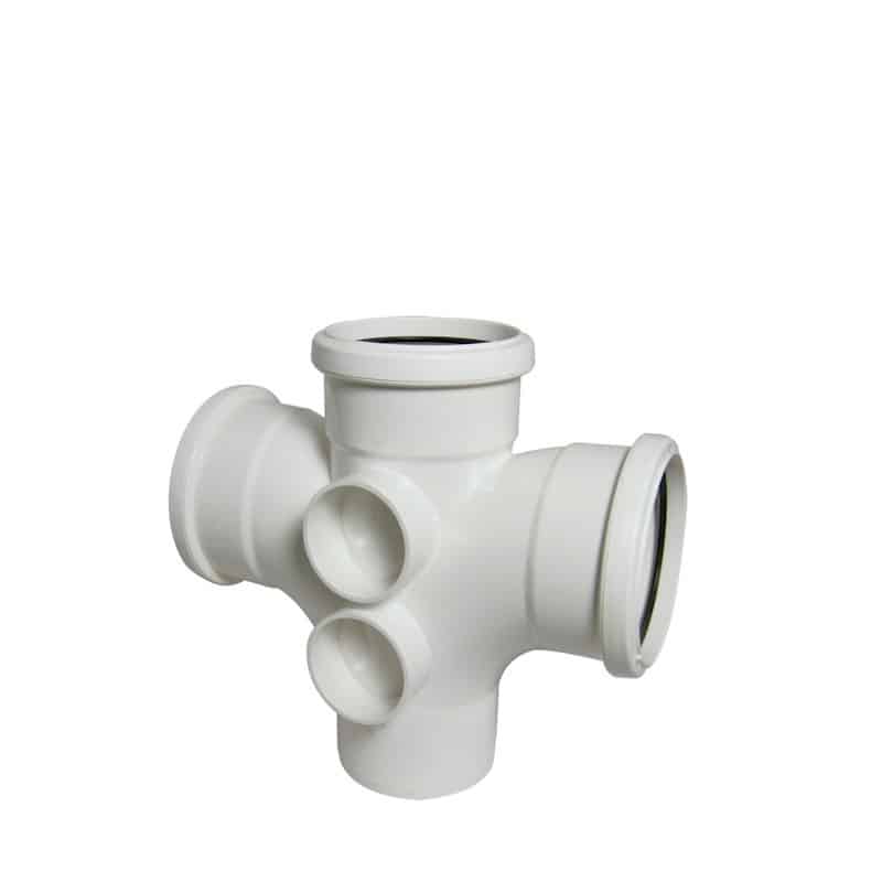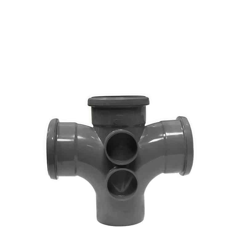 The 87.5° branch angles provide near-vertical connections, making this fitting ideal for soil stacks and multi-branch installations in domestic and commercial plumbing systems.