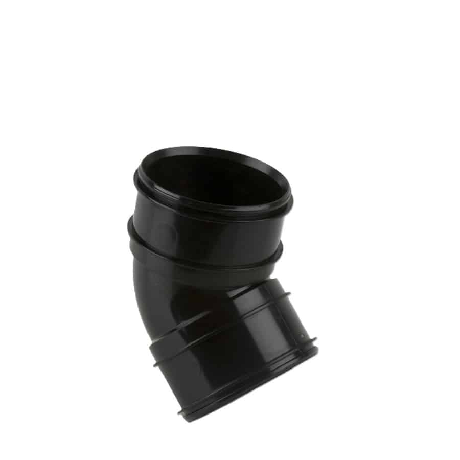 Available in black and olive grey, the 110mm Solvent Weld Bend 45° can be matched to existing pipe systems for a clean and professional finish.