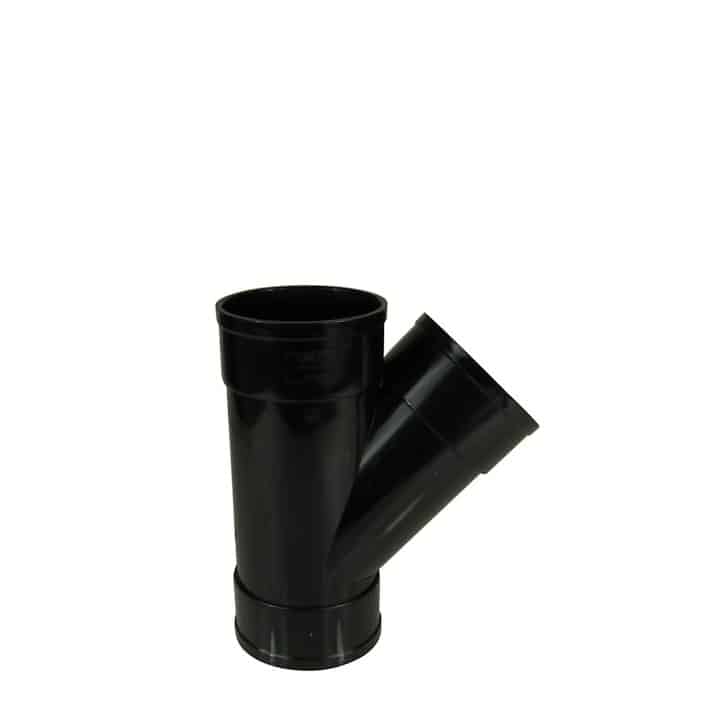 Available in black and olive grey, the 110mm Solvent Weld Branch 45° can be matched to existing pipe systems for a clean and professional finish.